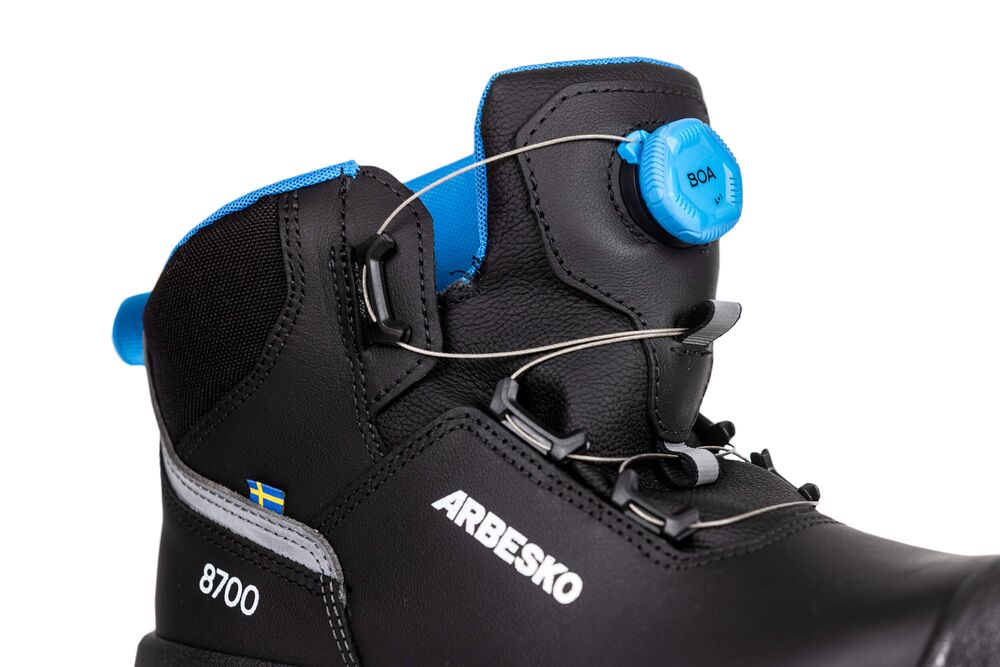 The upper made of water-resistant Super8 leather with a Cordura® collar protects against moisture and wear, while the wool lining and Woolpower insole offer excellent thermal insulation. The nitrile rubber outsole provides secure grip on cold and slippery surfaces. Reflective details enhance visibility, and the BOA® Fit System allows easy fit adjustment even while wearing gloves. The protection level is tailored for demanding winter environments.
