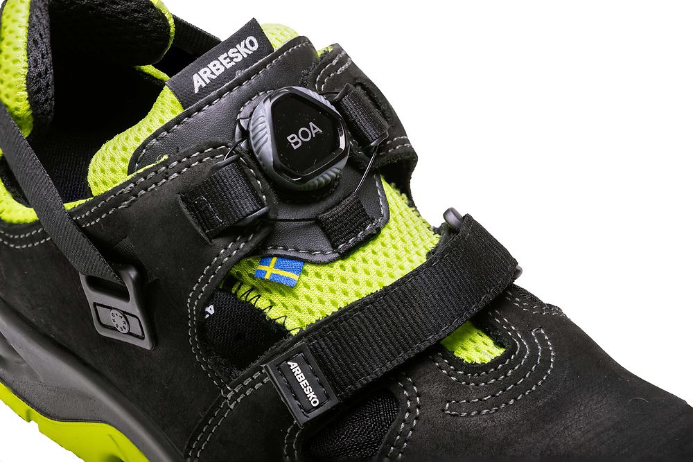 Umeå 929 is an extra-ventilated safety shoe equipped with a combination of elastic heel strap, Velcro® closure, and the BOA® Fit System for a secure fit and easy on and off. The airy design makes the shoe particularly suitable for craftsmen working in warm environments, both indoors and outdoors.